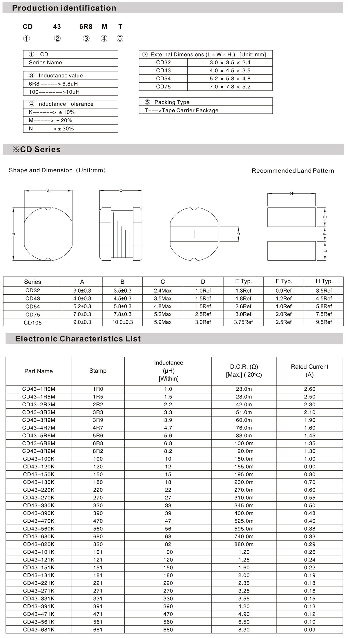● Ideally used in Mobilephone,PDA,MP3,DSC/DVC, portable DVD etc as DC-DC Converter inductors.